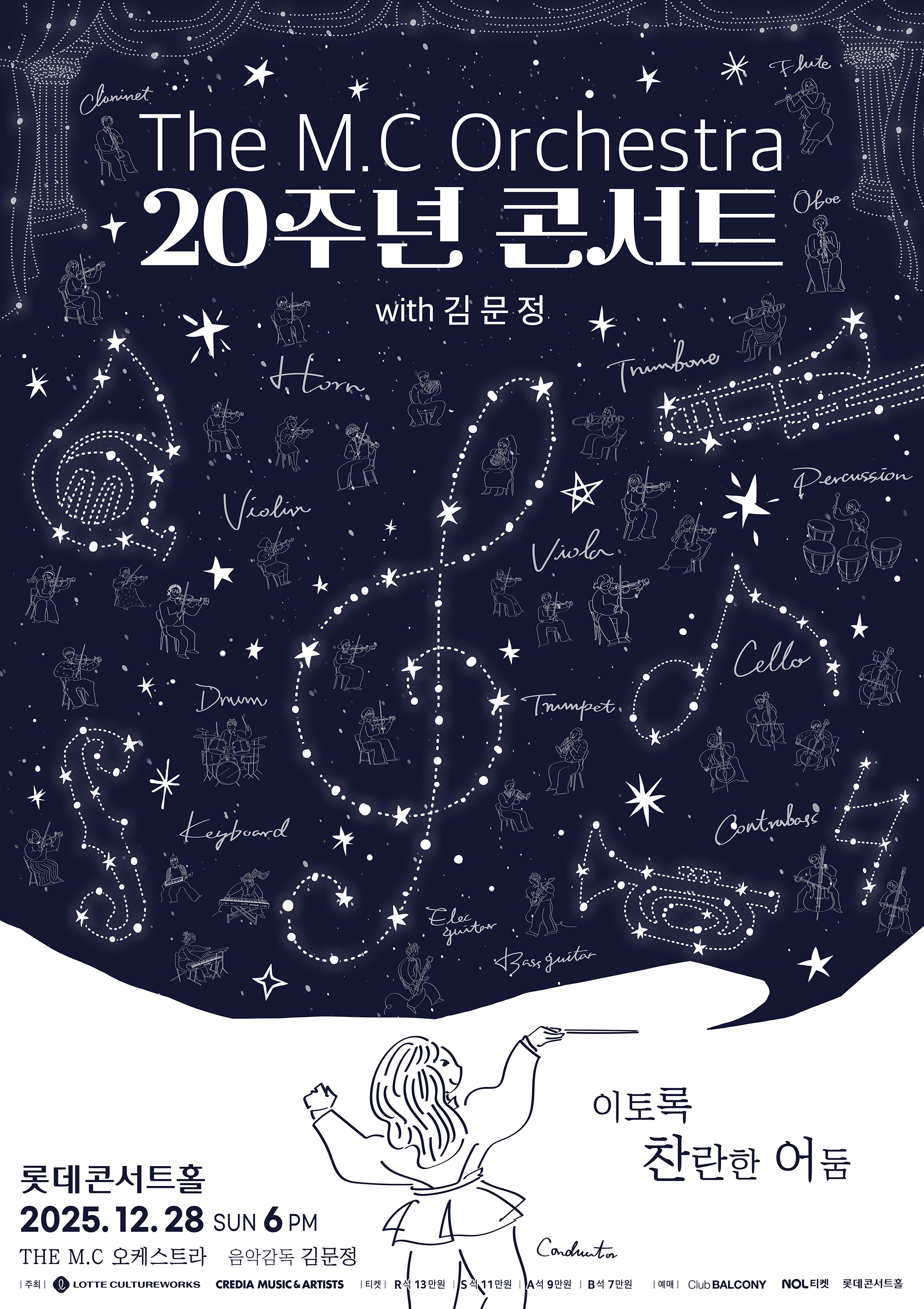 2025년 12월 28일 일요일 오후 6시. 대한민국 최초 뮤지컬 전문 오케스트라 The M.C와 김문정 음악감독이 창단 20주년을 맞이하여 롯데콘서트홀 무대에 오른다.